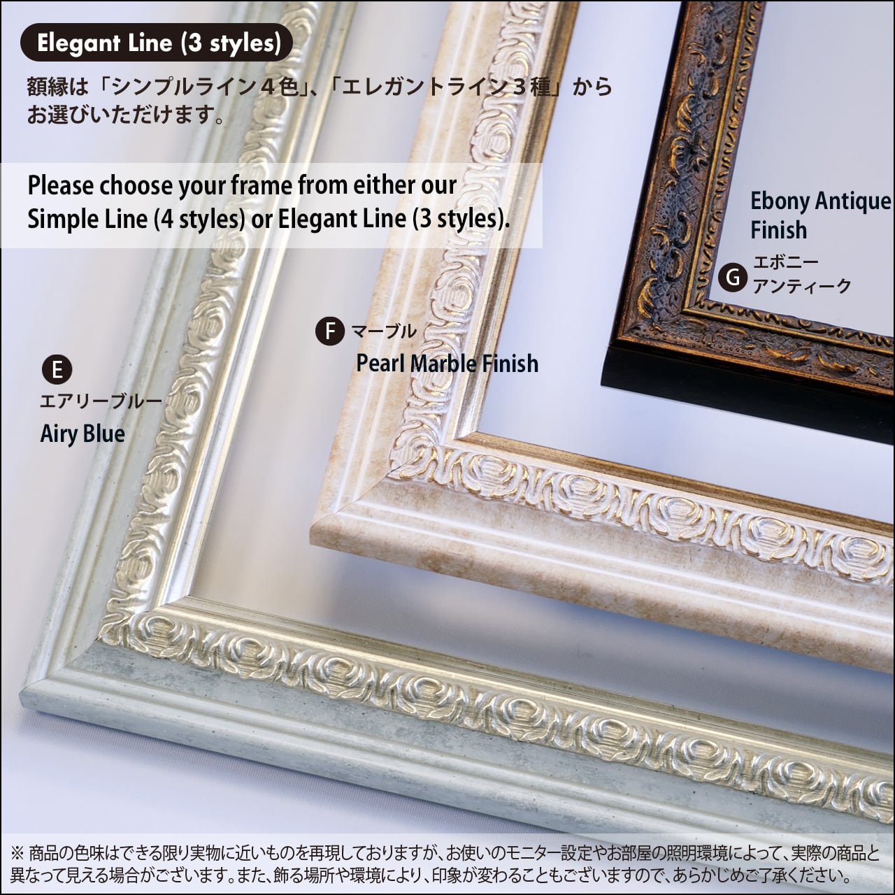 額の色目、仕様等、詳しく載っていますので、ぜひご確認下さい。
