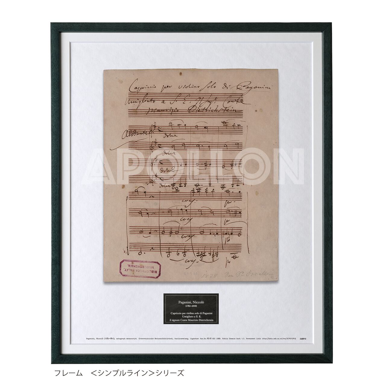 この《カプリッチョ(Capriccio)》は、1828年8月9日、パガニーニがウィーン滞在中に記したもので、オーストリアの貴族であり文化の庇護者として知られたモーリッツ・フォン・ディートリヒシュタイン伯爵に宛てて書かれたことが、楽譜冒頭の丁寧な筆跡と献辞から読み取れます。