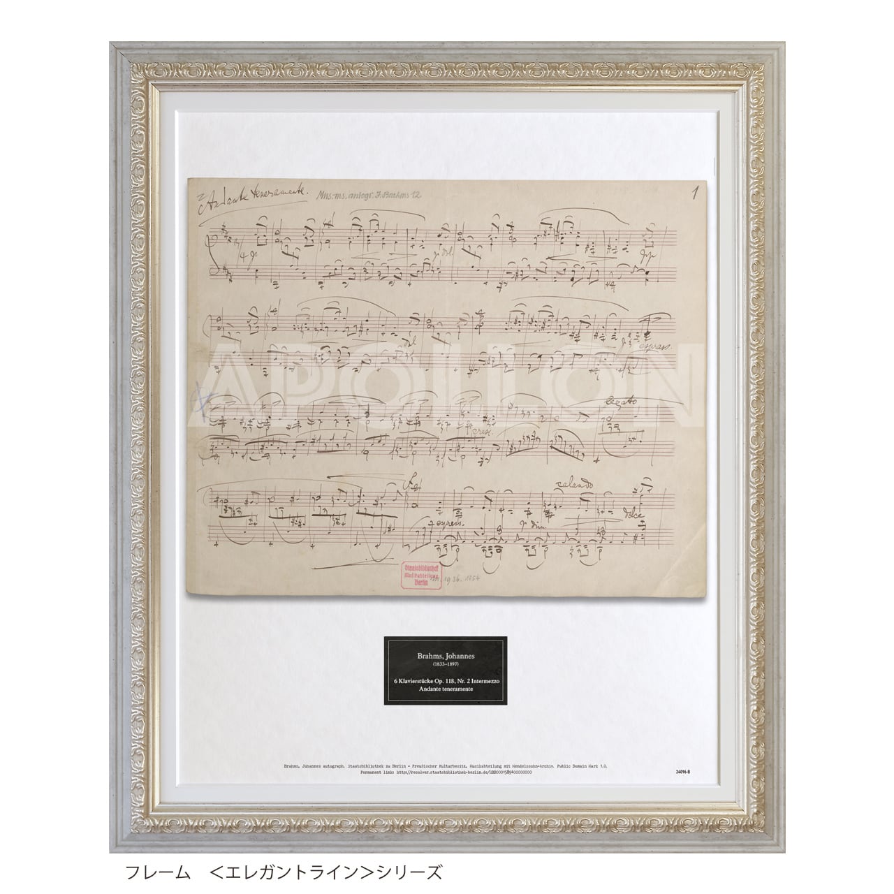 商品の色味については、できる限り実物に近づけるよう調整を行っておりますが、お使いのモニター設定や機種、お部屋の照明環境によっても、実際の商品と異なって見える場合がございます。また、所蔵機関のスキャニングデータに基づくため、オリジナルの自筆譜と色味が異なることもございます。あらかじめご理解いただきますようお願い申し上げます。なお、一部の作品には、裏写り(裏面の楽譜の透け)、経年によるシミ、または原資料の修復に由来する痕跡が見られる場合がありますが、これは所蔵先のスキャニングデータに起因するもので、原稿の忠実な再現です。