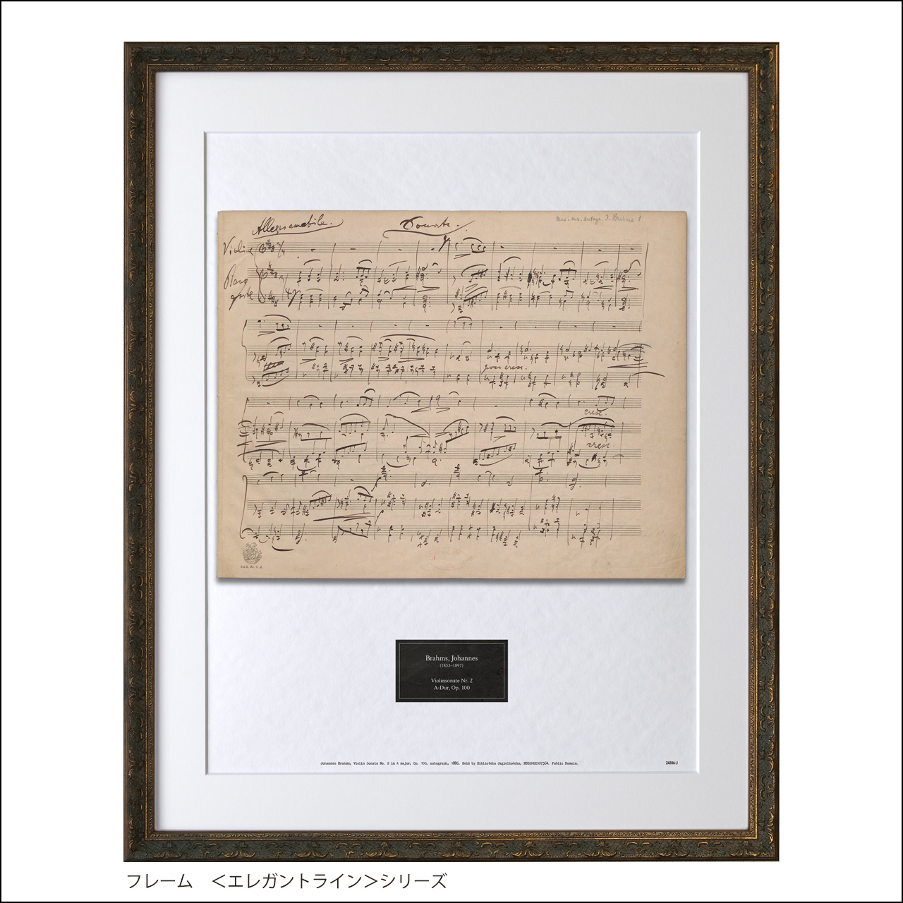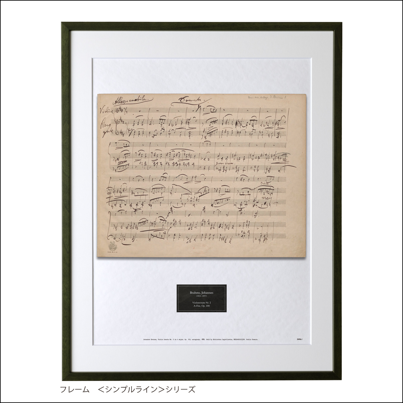 ブラームス 自筆譜アートフレーム:ヴァイオリン・ソナタ第2番イ長調 Op.100