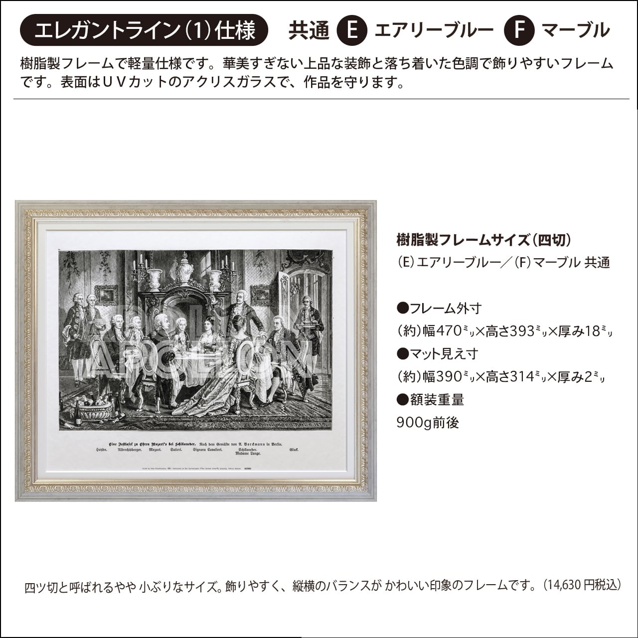 ●額縁/UVカットアクリルガラス、中性紙マット、吊元金具(額側)、吊紐、外箱