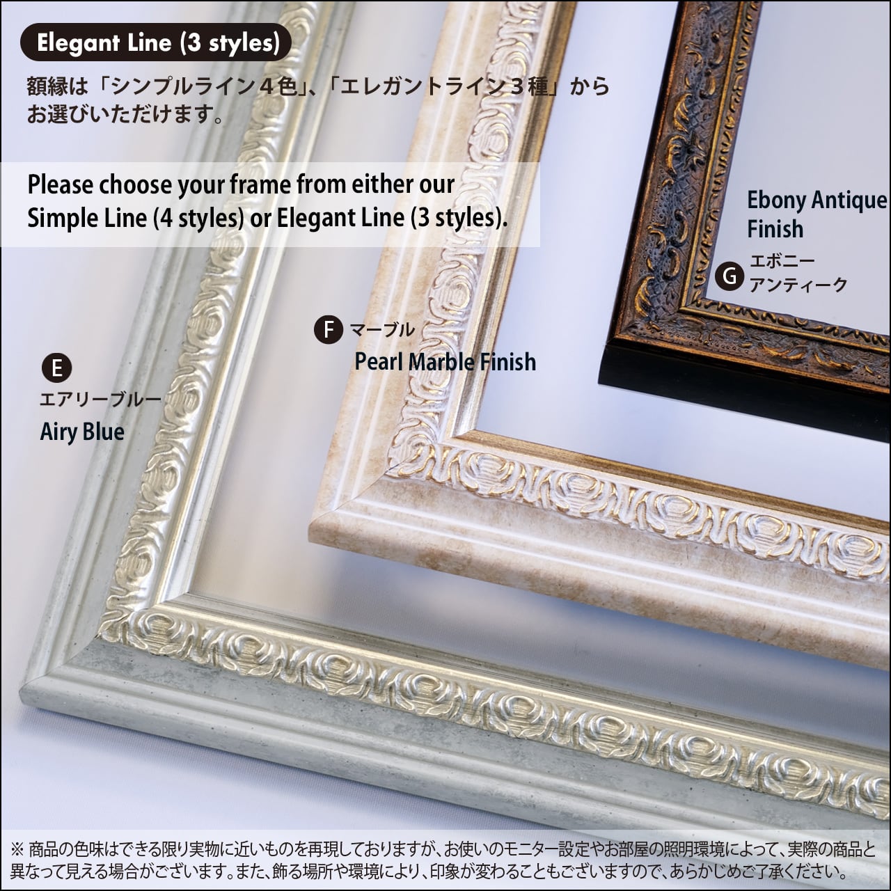 ◉額縁/UVカットアクリルガラス、中性紙マット、吊元金具(額側)、吊紐、外箱