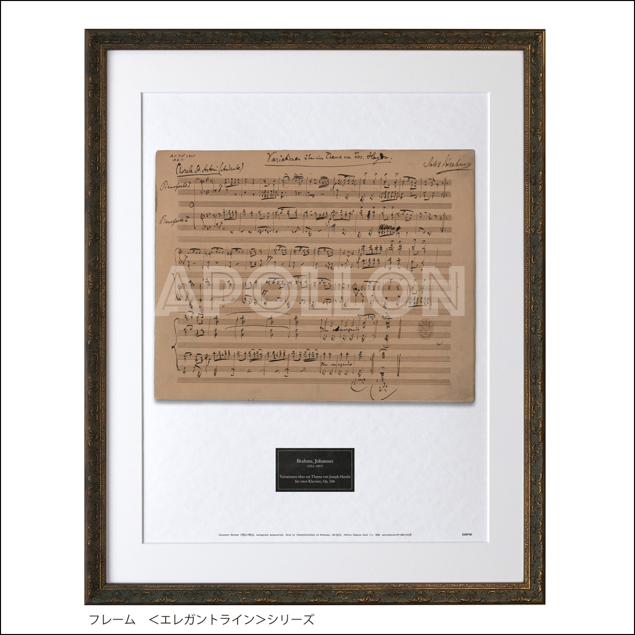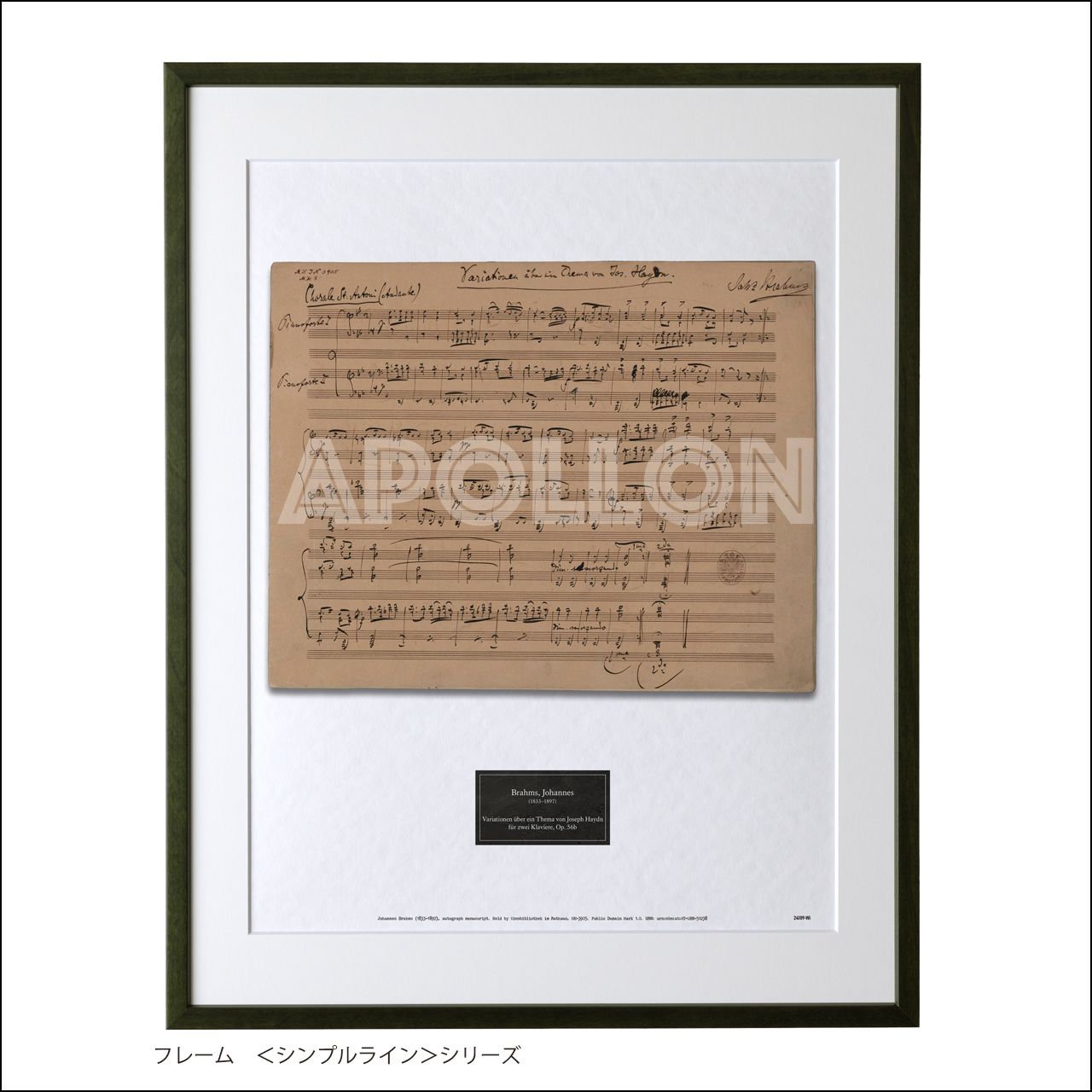 ブラームス 自筆譜アートフレーム:ハイドンの主題による変奏曲 作品56b(2台ピアノ版)