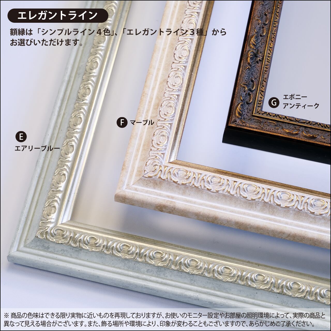 額の色目、仕様等、詳しく載っていますので、ぜひご確認下さい。