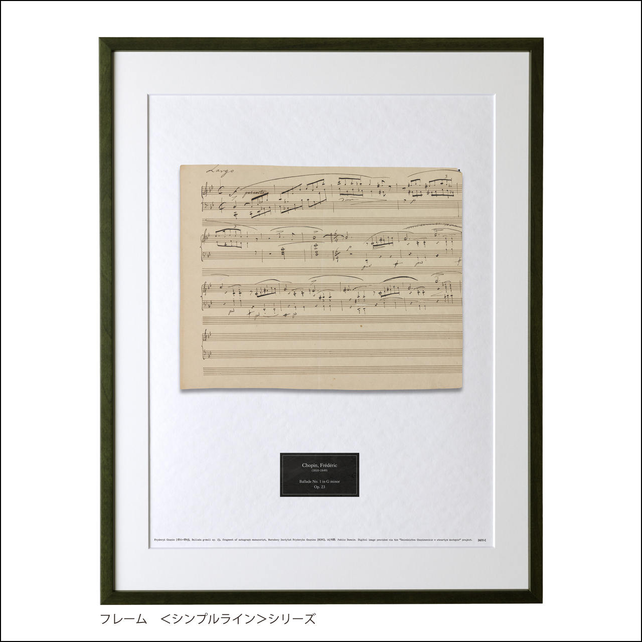 ショパン 自筆譜アートフレーム:バラード第1番 ト短調 作品23(断片)