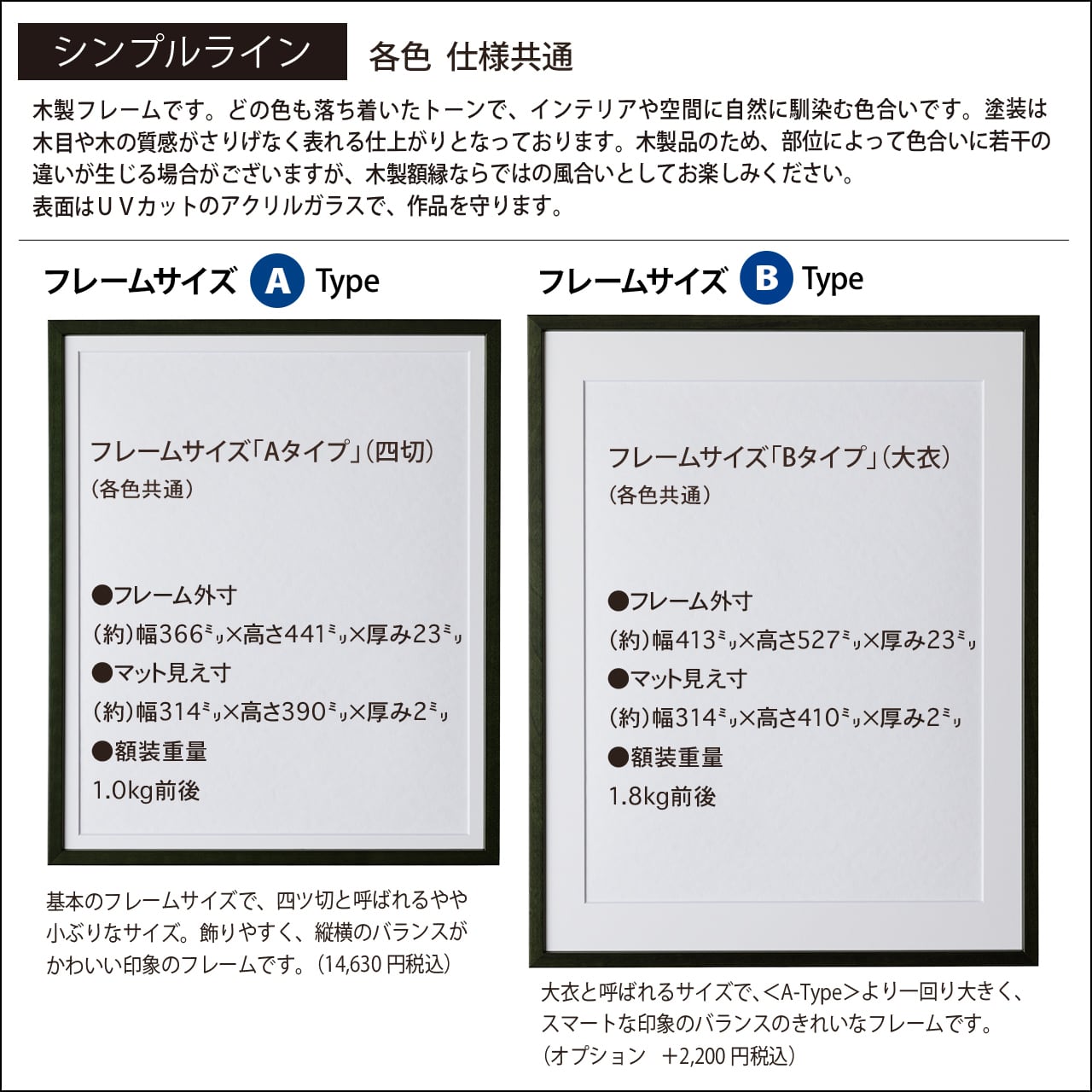 額の色目、仕様等、詳しく載っていますので、ぜひご確認下さい。