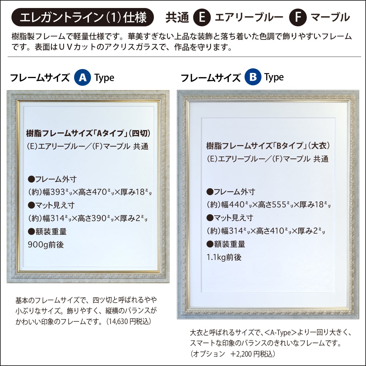 ▼フレームサイズ(B)Typeのサンプル画像です。※(A) Typeは上部画像をご確認ください。